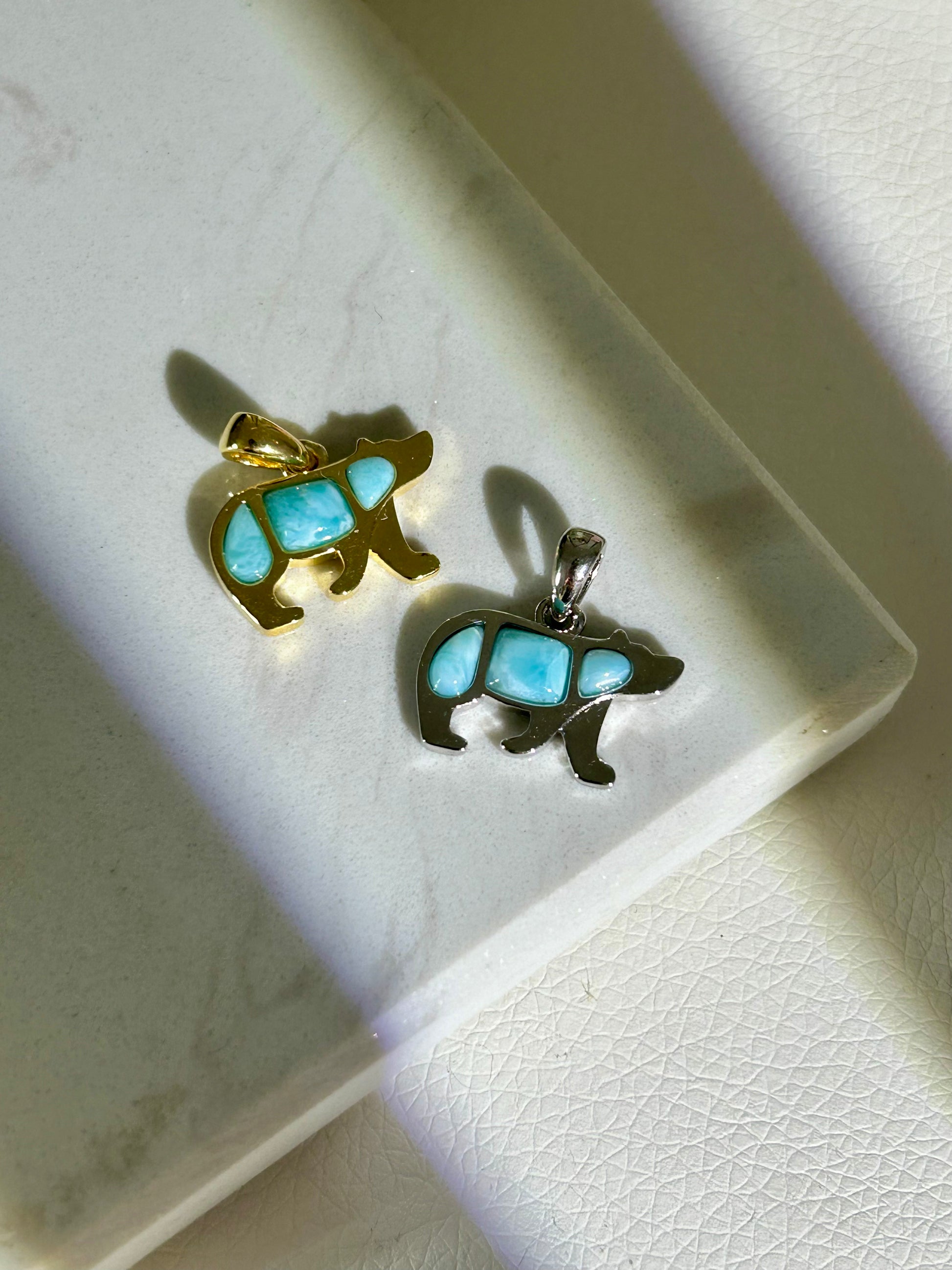Larimar Bär Anhänger - 925 Silber - 18k vergoldet