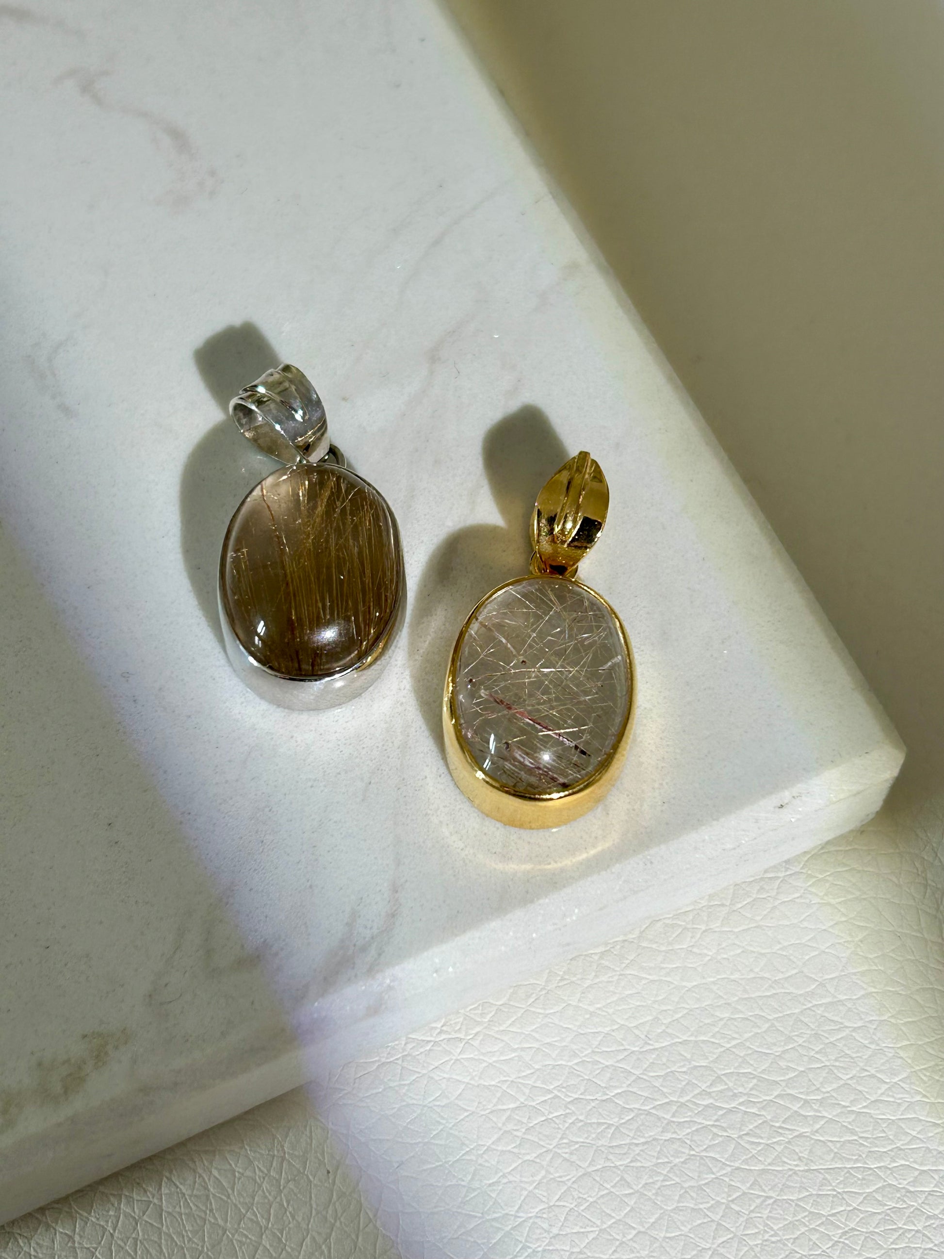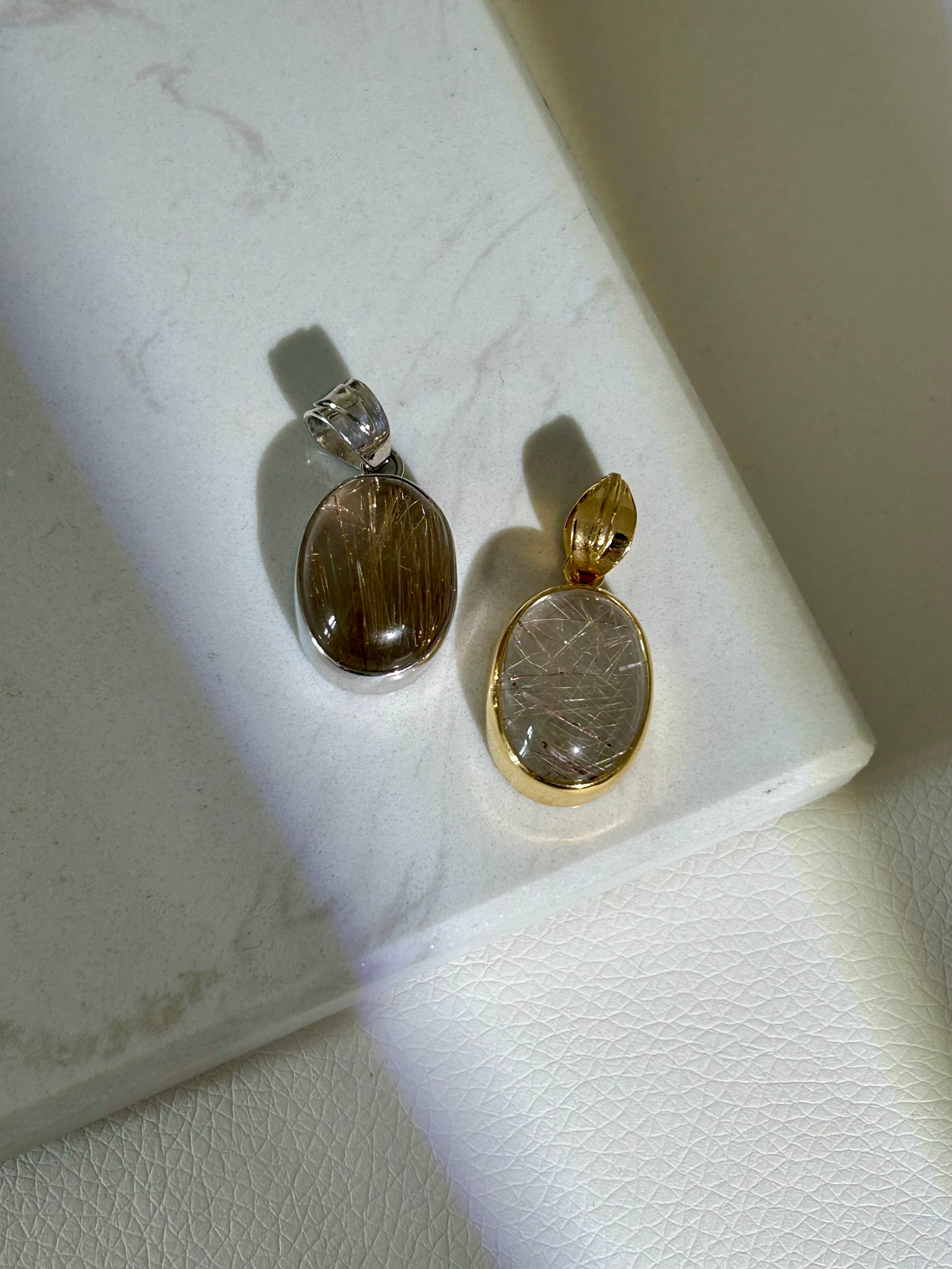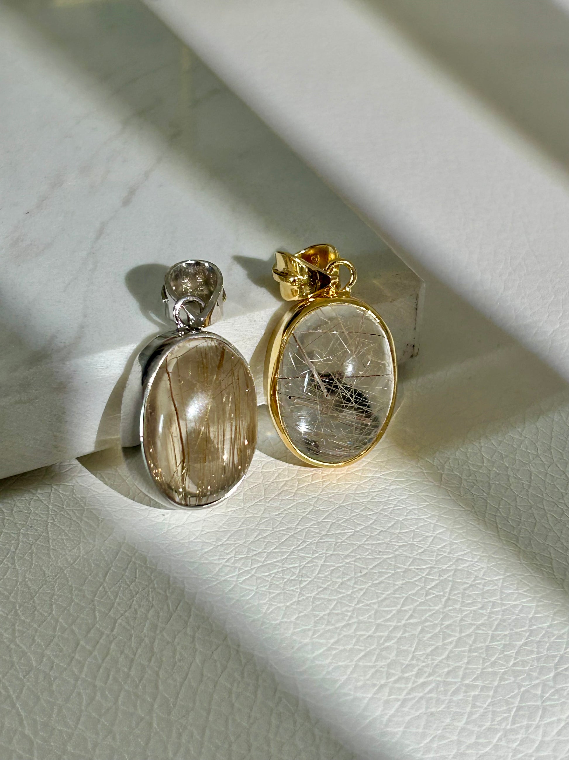 Rutilquarz Anhänger - 925 Silber - 18k vergoldet
