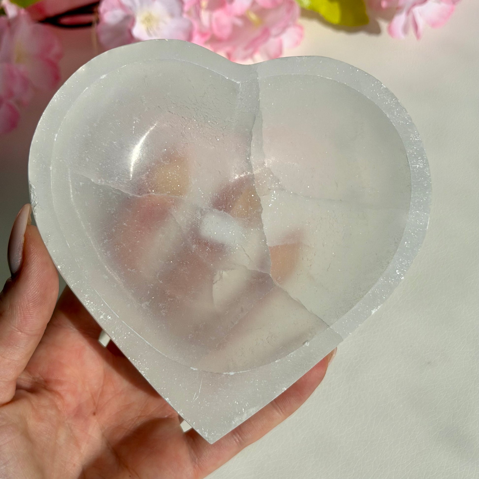 Selenit Schale in Herzform